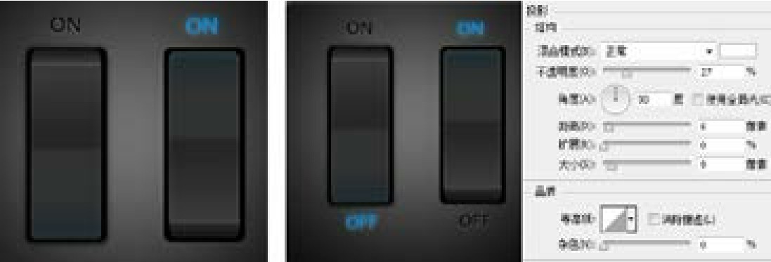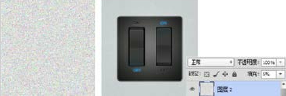 在Photoshop中绘制开关主要采用圆角矩形工具和图层样式相结合的方式,在制作时注意细节的设置、开关按钮的结构和质感效果,最后叠加杂点素材,使整个开关图标绘制得更加真实。