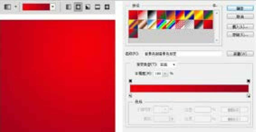 ②单击渐变工具,在属性栏上选择“径向渐变”,完成后设置渐变颜色,然后在背景图层上从右上至左下绘制“红色到暗红色”渐变(图3.127)。