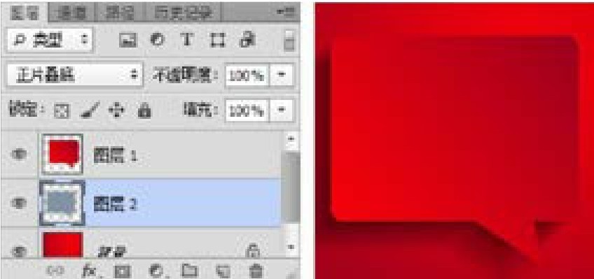 ⑨复制“图层2”,生成“图层2副本”。对其进行自由变换处理,并拖至“图层1”的上层,制作阴影效果(图3.134)。