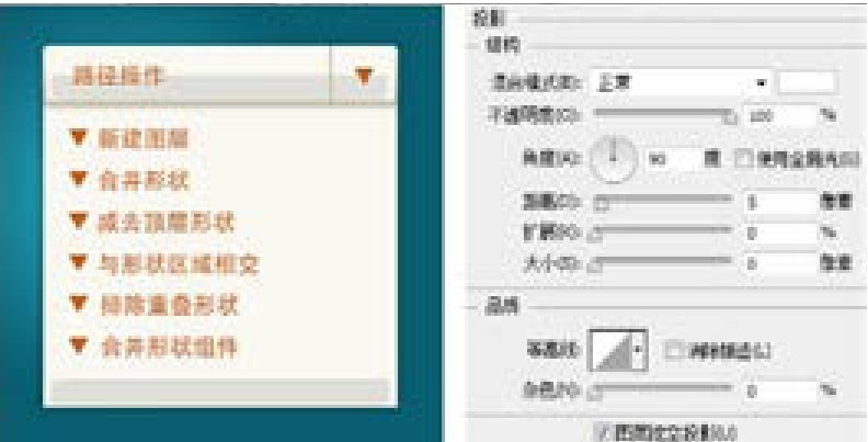 ⑤复制“圆角矩形1”,生成“圆角矩形1副本”,拖至最上层。按住Alt键在绘制的形状上重叠绘制,减去多余区域。双击“圆角矩形1副本”,添加投影效果(图3.106)。