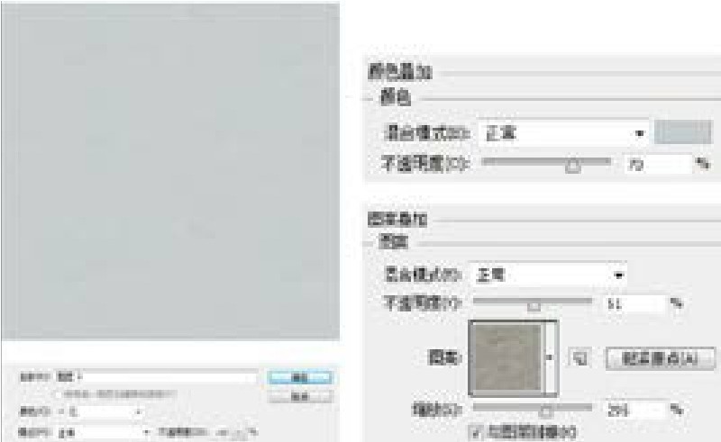②双击“背景”图层,在弹出的对话框中单击“确定”按钮。再次双击“图层0”,分别勾选“颜色叠加”“图案叠加”选项并设置各项参数,完成后单击“确定”按钮(图3.85)。