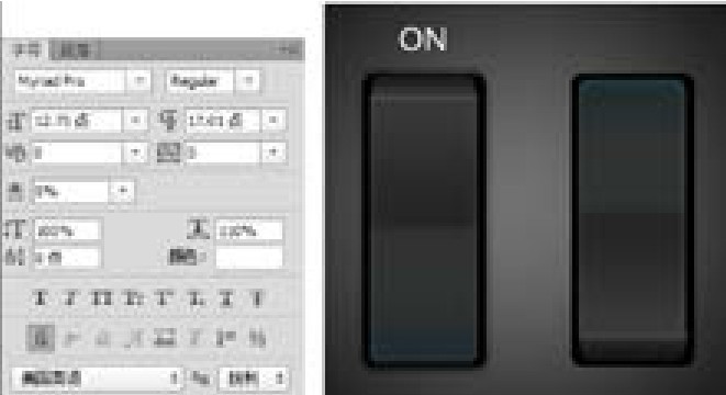 图层样式的设置为本案例的写实效果制作提供了快速实现的可能。在对文字进行设置时,颜色叠加及外发光图层样式的制作突出地显示了按钮所处的状态,展现了灯光的效果。