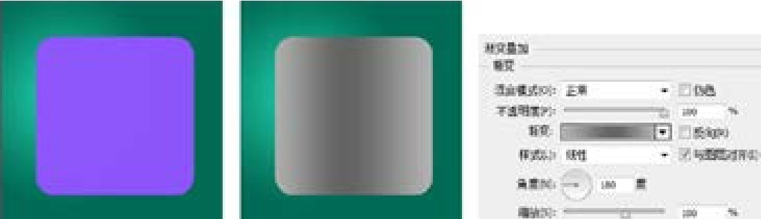 ③单击圆角矩形工具,在其属性栏上选择“形状”选项,在属性栏上设置“填充”为紫色,绘制圆角矩形形状。双击“圆角矩形1”,勾选“渐变叠加”选项并设置各项参数,完成后单击“确定”按钮(图3.116)。