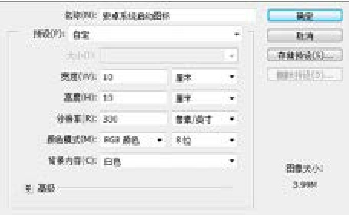 ①执行“文件”→“新建”命令,在弹出的“新建”对话框中设置各项参数及选项,设置完成后单击“确定”按钮,新建空白图像文件(图3.153)。