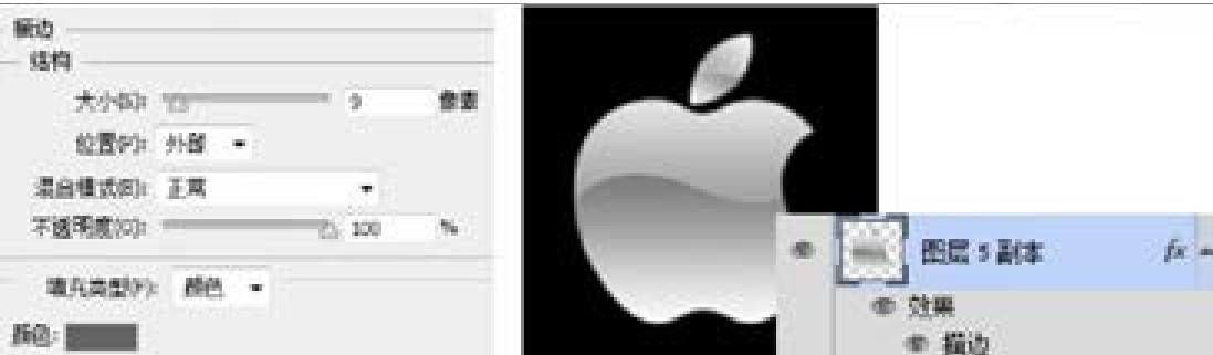 ⑥按住Shift键选中绘制的iOS系统启动图标的所有图层,复制后按快捷键Ctrl+E进行合并,生成“图层5副本”。双击“图层5副本”,添加“描边”效果。至此,本实例制作完成(图3.158)。