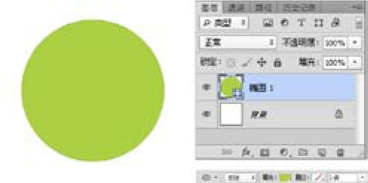 ②单击椭圆工具,在其属性栏中设置其属性为“形状”,“填色”为绿色,然后在画面适当位置绘制圆形(图3.142)。
