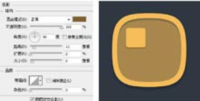 ⑧双击“图层1”,分别勾选“投影”“内阴影”选项并设置各项参数,完成后单击“确定”按钮,(图3.186)。