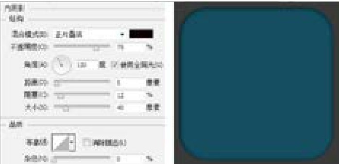 ③双击“圆角矩形1”,勾选“内阴影”选项并设置各项参数,完成后单击“确定”按钮(图3.181)。
