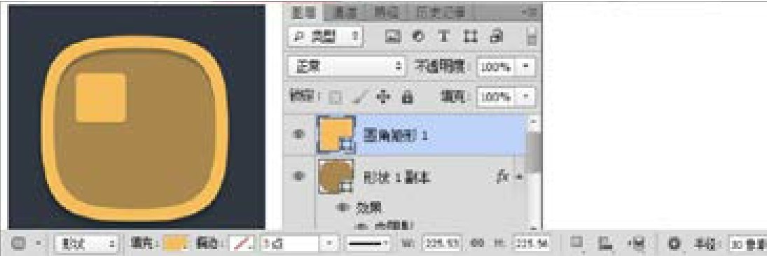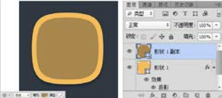 ④复制“形状1”,生成“形状1副本”,按快捷键Ctrl+T对图像进行适当缩小,并设置“填充”为棕黄色(图3.170)。