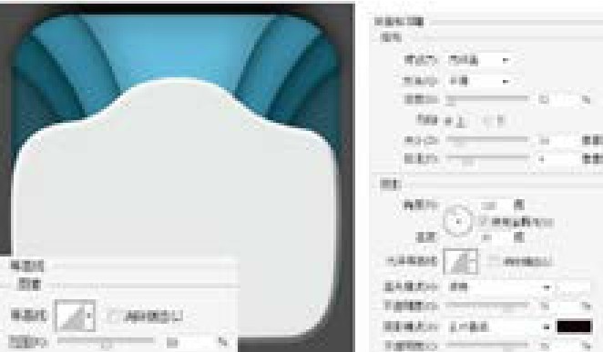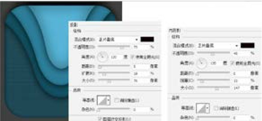 ⑩使用相同方法,复制“图层1副本”,并进行自由变换处理,填充新的颜色为更浅的蓝色。双击“图层1副本2”,分别调整“投影”“内阴影”各项参数,完成后单击“确定”按钮(图3.188)。