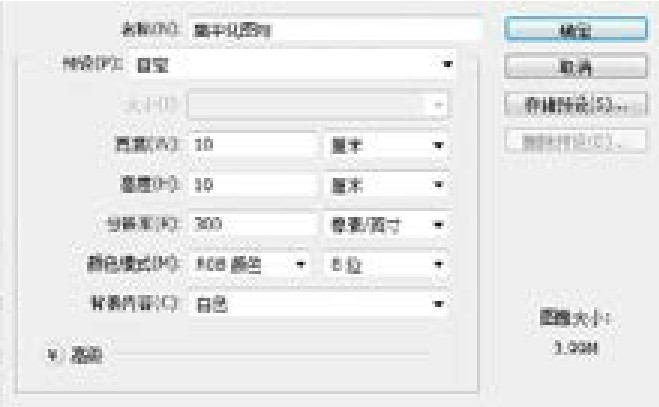①执行“文件”→“新建”命令,在弹出的“新建”对话框中设置各项参数及选项,设置完成后单击“确定”按钮,新建空白图像文件(图3.179)。