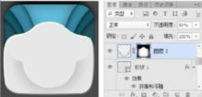 ⑤按住Ctrl键单击“圆角矩形1”,将图像载入选区。单击“添加图层蒙版”按钮,将选区载入蒙版(图3.183)。