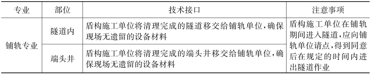 (1)盾构施工单位应确保端头井和隧道内清理干净后再移交给铺轨单位。