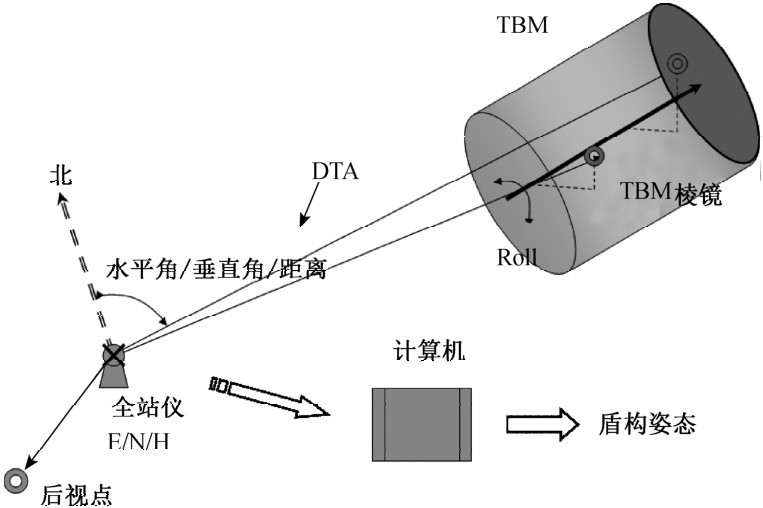 图4-30 空间两点三维坐标及盾构机坡度、滚角计算盾构姿态示意图