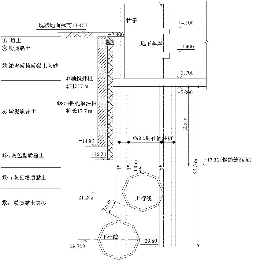 (2)将穿越前作为试推进段,在盾构穿越高架及轻轨之前的施工过程中,总结出盾构所穿越土层的地质条件,掌握这种地质条件下土压平衡盾构推进施工各施工参数和同步压浆量的设定,以求达到盾构以最合理的施工参数穿越。