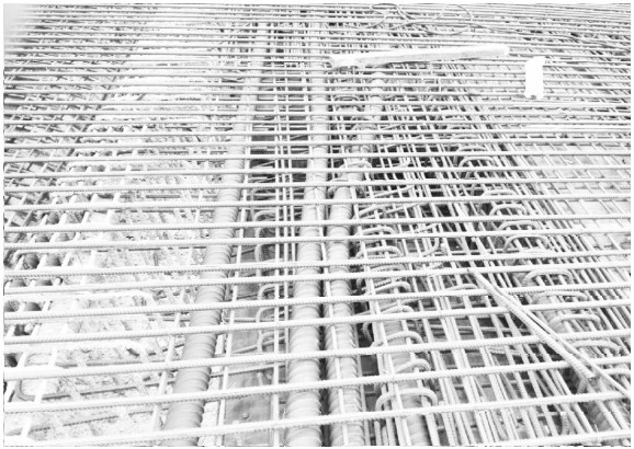 (1)根据设计提供的管道坐标以及孔道尺寸制作相应模具,在模具上焊接管道定位钢筋成井字形并编号。