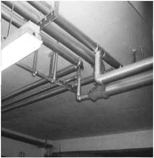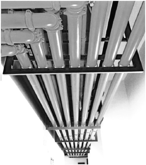 通病分析:安装管道支吊架时,管道支架选用不当,管道支架安装间距过大,标高不准,管道支架固定不牢、固定方法不对;管道或支架局部变形;管道支架焊接的焊缝不符合施工规范要求,没有达到应全长焊接的要求。