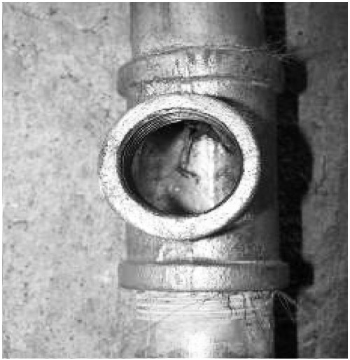 通病分析:通病分析管道加工制作时,钢管套丝扣存在乱丝、丝扣过长或过短、锥度不合适;丝扣连接处麻丝未清除干净。