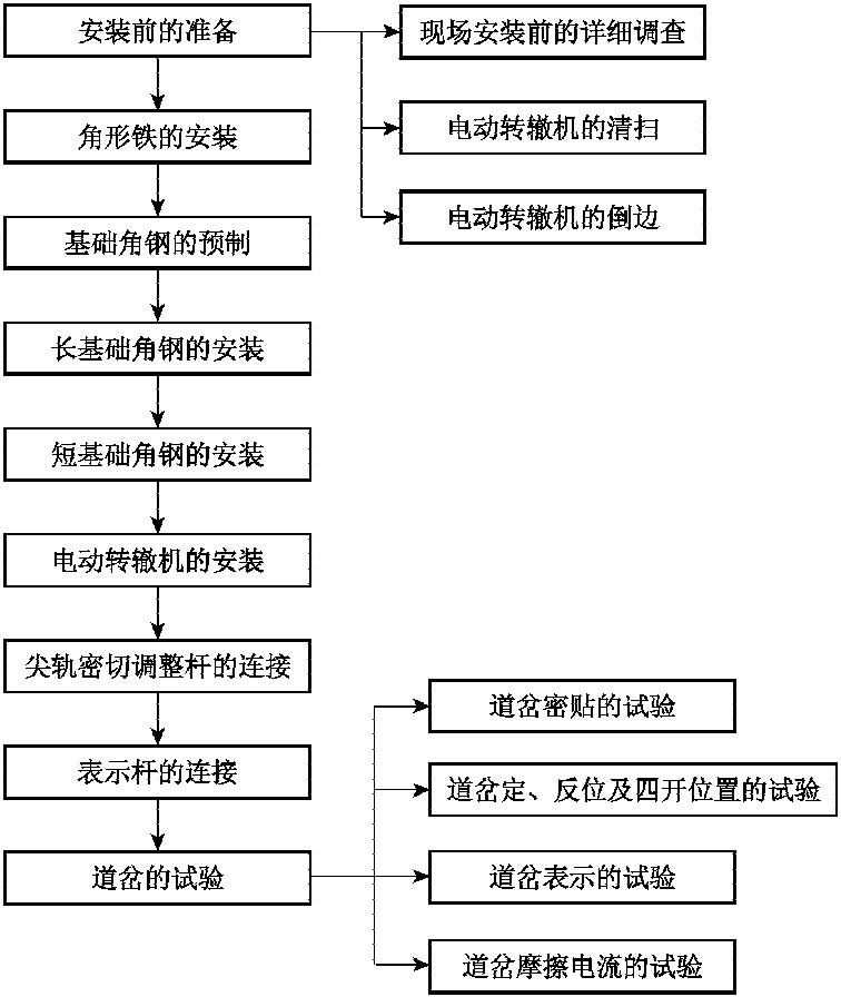 图9-11 电动转辙机及转辙装置安装工艺流程图