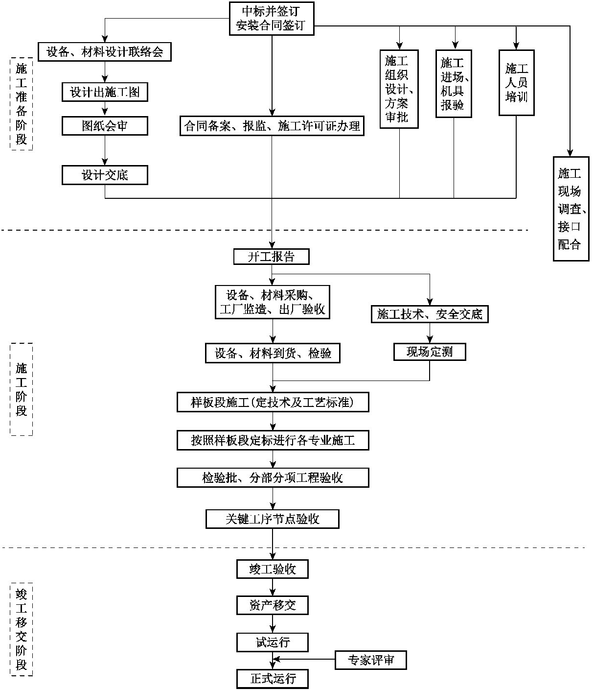 (4)建设四方共同决定建立各专业样板段的区域,施工单位进行样板段的施工,在过程中制定技术和工艺上的施工标准。