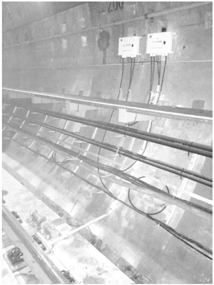 (2)预防措施:①传感器端子排需严格检查,有不合格的需更换,接线时保证线与端子排连接牢靠;②传感器测量电缆采用1×2.5mm2电缆;与走行轨连接采用黄色电缆,参比电极连接采用绿色电缆(注:硫酸铜参比电极处1×2.5mm2的测量线需沿侧向平台的悬臂梁下方处),在进行接线,严禁其出现在侧向平台板上方,以免使其受到踩踏,影响美观,测试端子连接采用红色电缆,各个测量电缆需穿黑塑料管,且在墙上时需用PVC管保护并用直角弯头保证横平竖直,走向美观,保证二次配线的横平竖直,接线牢靠,且接线完成后需用密封圈或防火泥对传感器进行封堵,以免进水;③传感器安装时需在传感器底部加戴一个螺帽,以保证其离墙安装,使隧道壁的水不易渗入传感器内部,防止烧毁电路板,且接线完成后需用防火泥等材料对箱体进行密封,使其不要受潮;④电缆沿隧道壁或道床敷设时,需穿PVC管进行保护,PVC管两端用固定卡固定后,每隔800mm用一个固定卡固定或者不大于800mm平均分布固定卡;通信电缆及电源电缆拐弯时用黑胶管保护(1×2.5mm2线拐弯时用PVC弯管),黑胶管固定和PVC管保护一样;电缆过道床旁水沟时需穿钢管保护;传感器电缆在区间敷设时,沿既有干线电缆支架敷设,通信电缆与变电所控制电缆同层敷(即第四层)设,电源电缆与动力照明电缆同层敷设(即第三层),且绑扎时需每三个支架进行一次绑扎(图12-49、图12-50)。