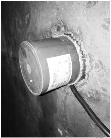(2)预防措施:氧化钼参比电极直径为48mm,长为156mm,用水钻(钻头为M60)钻一孔深大于160mm的孔洞,将孔底部尽量敲击平整,并清除孔内碎石,保证参比电极安装后不会出现“露头”现象。