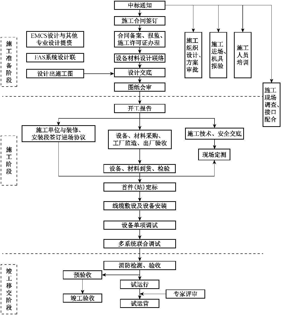同时针对每个不同的系统和施工工序,制定不同的系统施工流程。