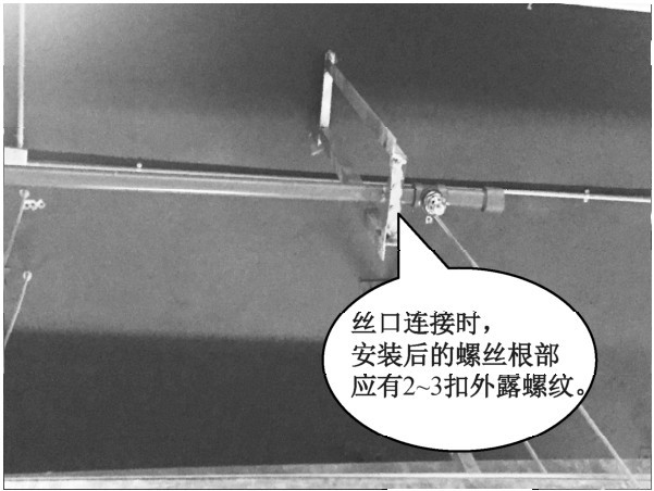 (2)预防措施:安装后的螺纹根部应有2~3扣外露螺纹。注意喷头的外套丝处应缠绕聚四氟乙烯胶带作为密封带(图15-26)。