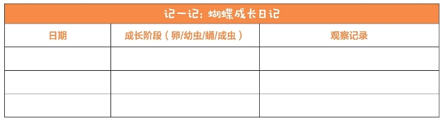 ·如果你想要更完整地了解蝴蝶成长的过程,还可以把找到的蝴蝶卵或幼虫宝宝带回家饲养,记录它的成长过程。