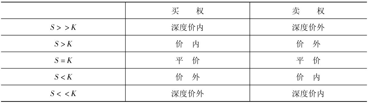 表2-1 价内期权、价外期权及平价期权