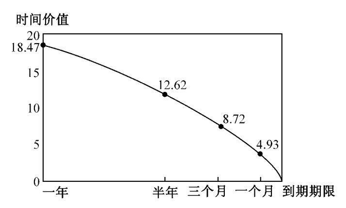 图3-6 看涨期权的时间价值与到期期限