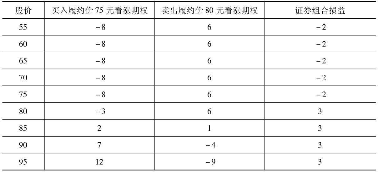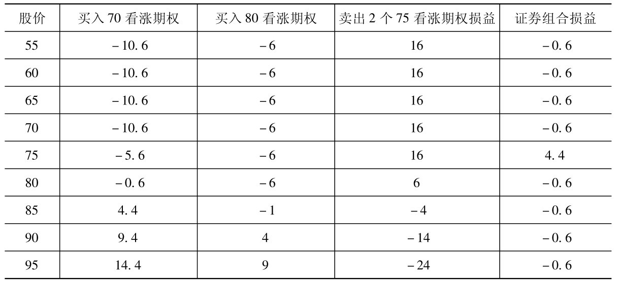 其中,C70、C75、C80分别表示执行价格为70元、75元、80元的看涨期权。