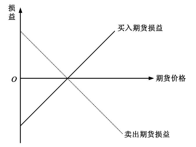 投机策略中,投机者是一位风险的承担者(risk takers)。由于承担较大的风险,因而预期有大的报酬。投机者一般对未来的市场有特定的看法。在看空市场时,投机者卖出期货契约; 而在看多期货市场时,会买进期货契约。当期货的价格变动方向如预期则有收益,反之则有损失,如图10-1所示。买卖期货的损益和买卖股票一样,损失或获利都是线性的,这和期权不同。
