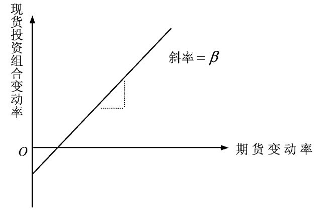 图10-3即为对冲比率β的概念,横轴表示期货的变动率,而纵轴为现货证券组合的变动率。