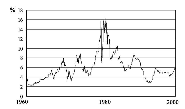 图13-2 1960年来美国3个月短期国债利率走势(月资料)