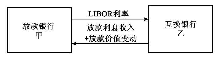 总报酬互换(total return swap)也可称为总贷款报酬互换(total return loan swap)。总报酬互换与信用违约互换有一点类似。放款银行甲方贷款给A公司,但是怕A公司由于信用风险使得贷款无法按时收回或贷款价值缩水,因此甲方跟互换银行乙订立一个契约,每一季甲方将贷款所获得的利息或费用收入,加减贷款金额价值的变动的总报酬,支付给乙方,而乙方则支付给甲方浮动利率,譬如LIBOR利率乘以约定本金。因此,对甲方而言,虽然贷款给某一家公司承受信用风险,但是经由总报酬的互换可以得到LIBOR利率的收入,便可以规避放款所产生的风险,如图13-9所示。