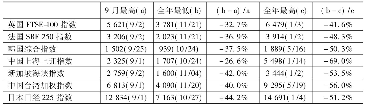 表14-5 2008年金融海啸世界各地区股市下跌情形