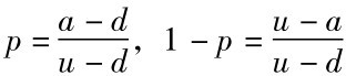其中,,a=erΔt或1+rΔt,r为利率;Δt为期间的长短。此外, u、a、d还须满足u>a>d的条件,不然会有套利的情形发生。在此,p可视为股价上涨的概率。[2]
