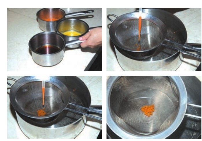 3 Drop three kinds of juice in calcium water, put them into the fish roe shape.