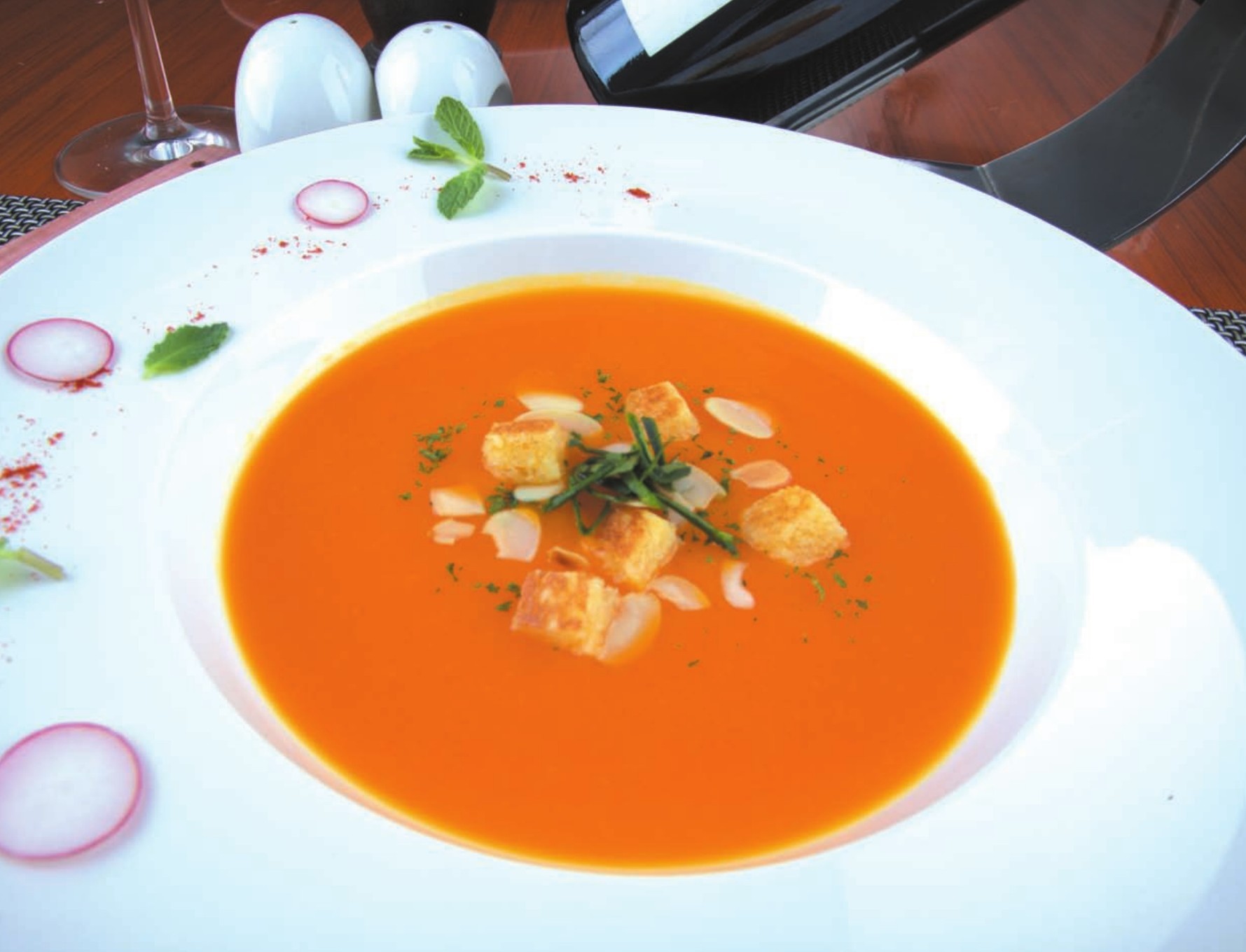 材料 南瓜300克,洋葱50克,香叶、盐、胡椒粉各少许,鸡汤底适量。