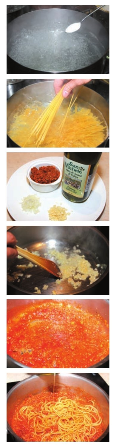 1 Boil the water with appropriate salt and put the pasta to boil 80%.