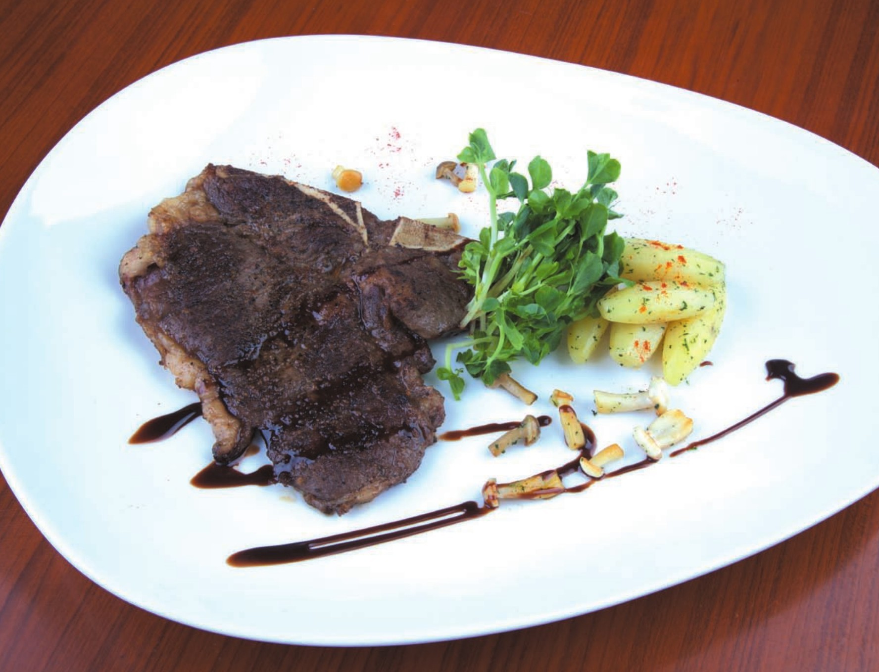 2 锅中加油烧热,下入小牛T骨煎至所需程度。