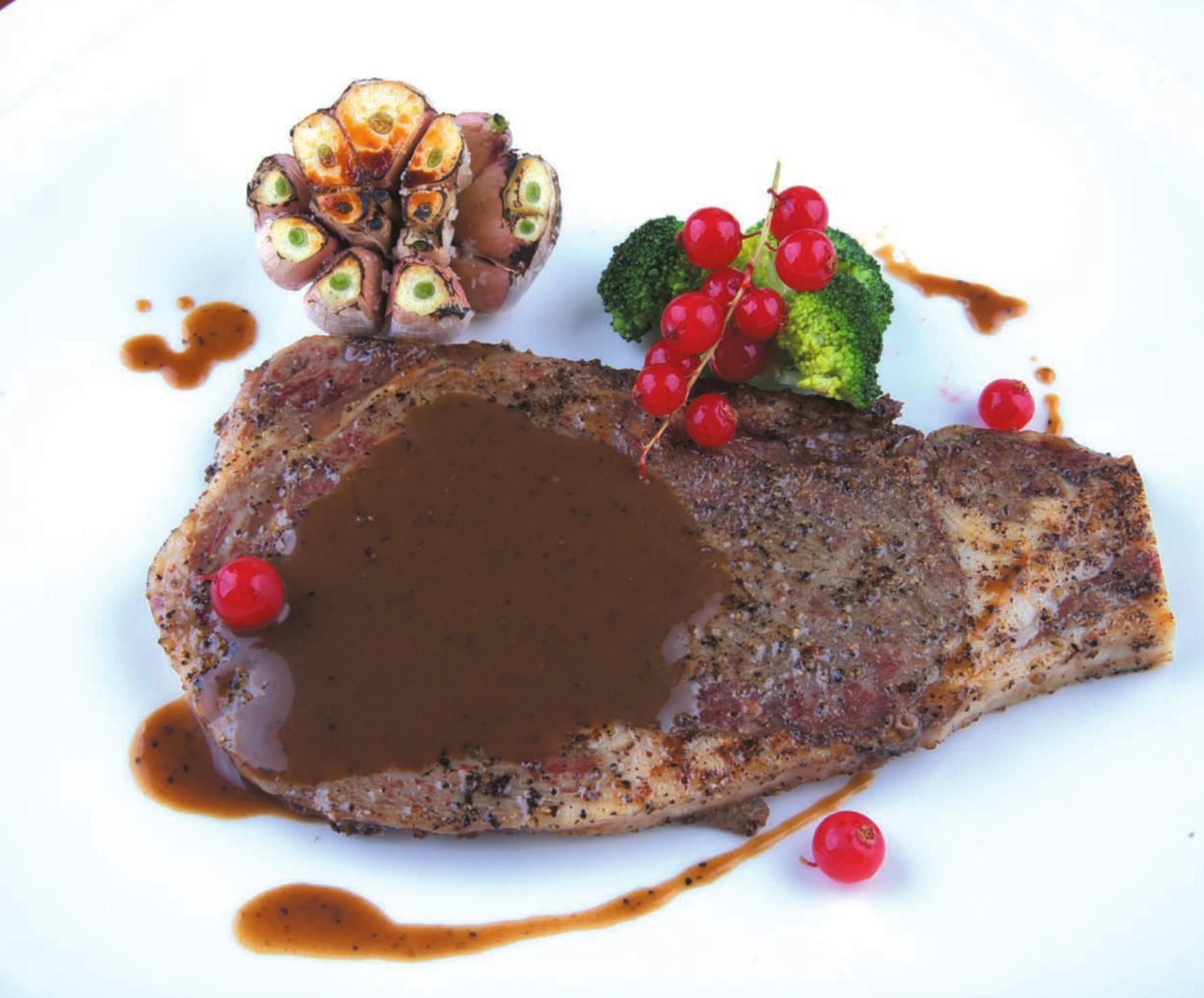 1 将肉眼牛排用盐、黑胡椒、橄榄油腌制10分钟。