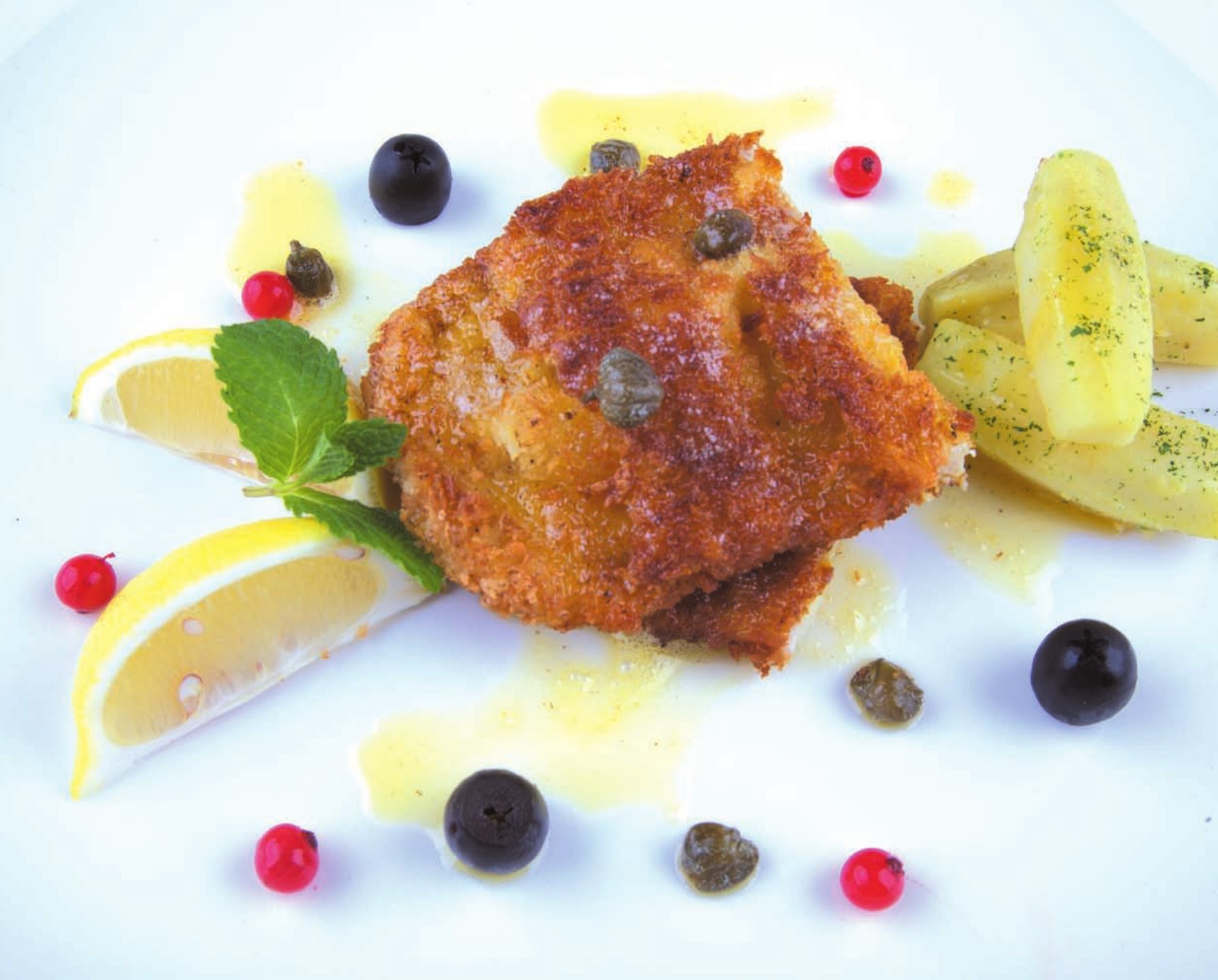 5 Dish up, match with boiled potatoes, lemon wedge and caper.