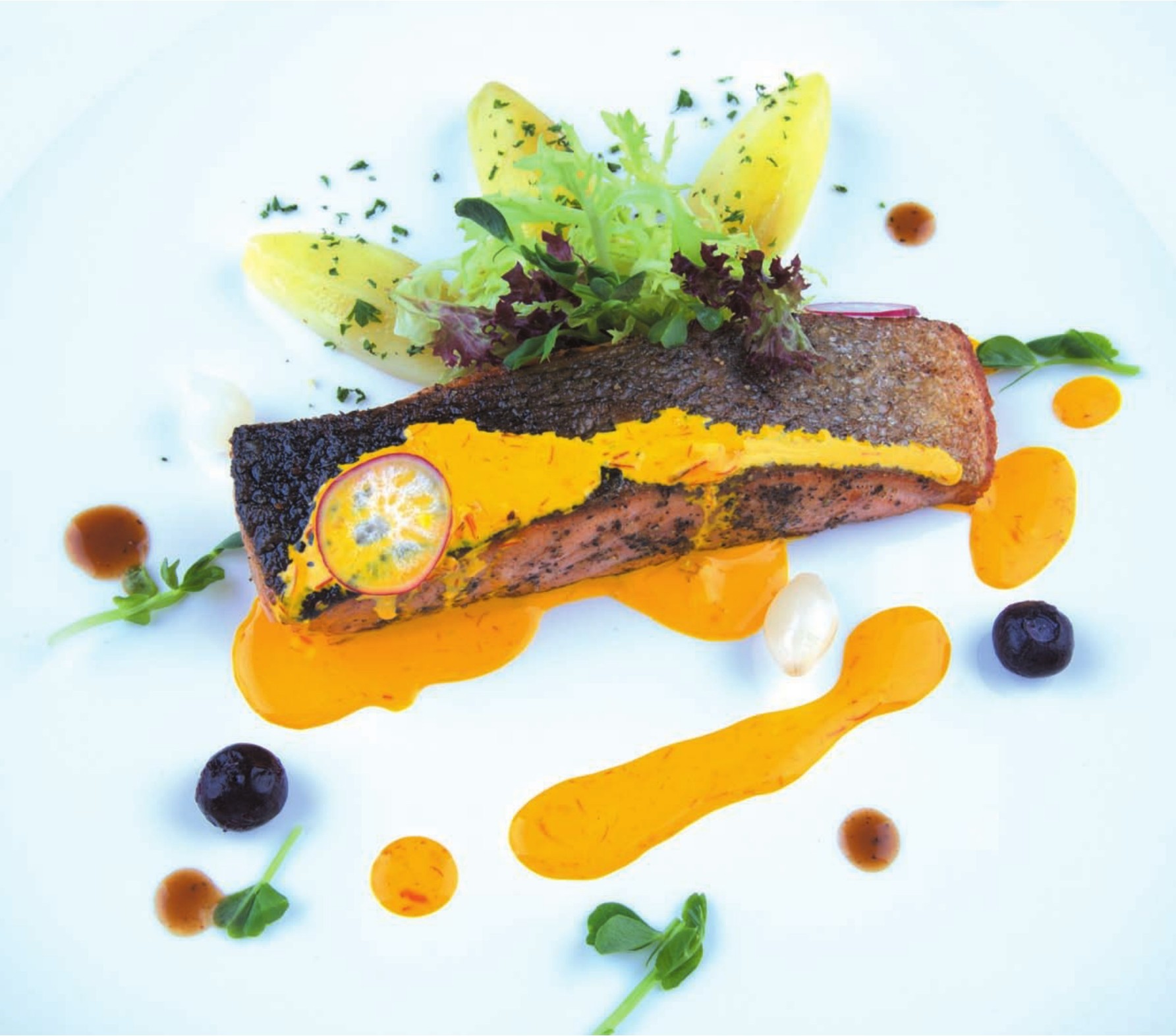 5 Installed dish and pour the saffron sauce in fillet.
