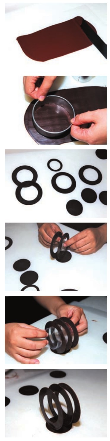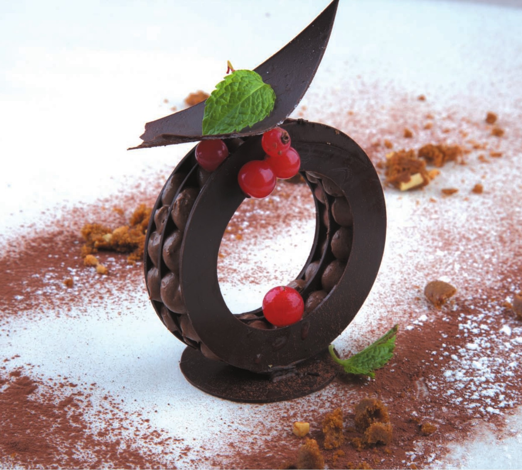 6 装盘,将做好的巧克力慕斯挤在巧克力圆片中即可。