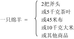 随着生产力的发展,在出现了第一次社会大分工,即农业和畜牧业分离后,产品交换变得很频繁。这时,一种商品的价值已经不是偶然地表现在某一商品上,而是经常地表现在一系列的商品上。如: