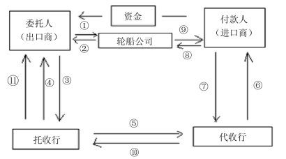 (3)出口方填写托收申请书,开立汇票,连同有关货物的单据交托收行,委托其代收货款。