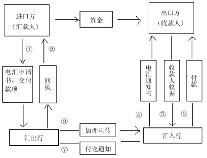 电汇是指进口方请本地银行用电讯手段通知出口方所在地银行付款给出口方。其收付程序如图11-1所示。