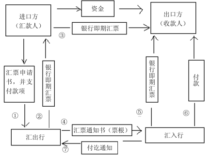 票汇是由进口方向当地银行购买银行汇票,本票或支票等票据,并直接寄给出口方,出口方凭汇票向汇票上指定的银行取款。